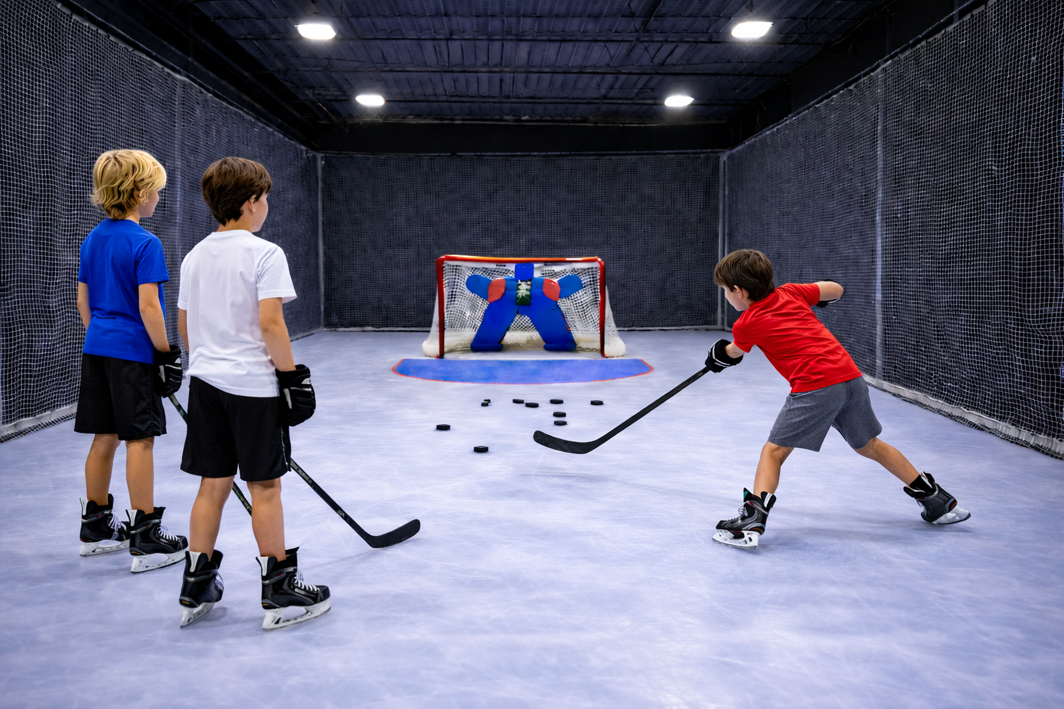- Skate-on skills lane: Edge work + puck control stations that run reliably every hour, without ice scheduling constraints.