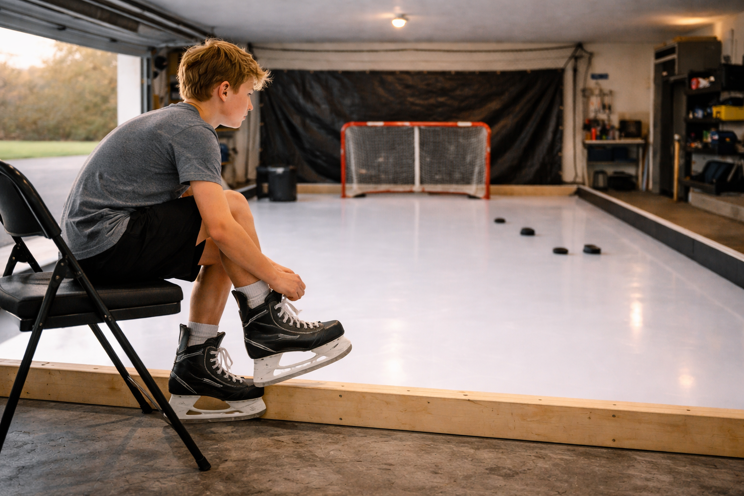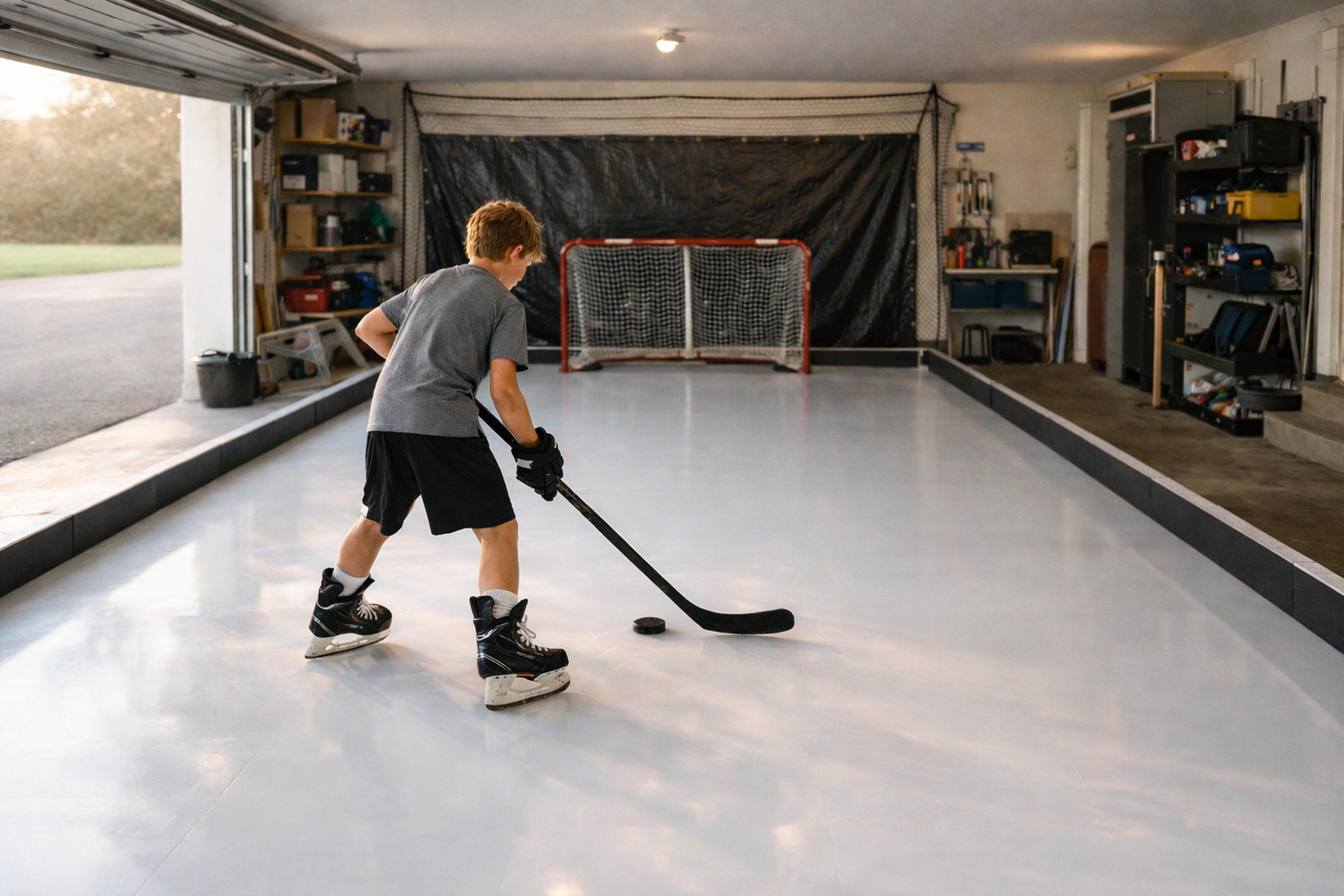 A setup that makes it easy to skate, shoot, and handle pucks more often - without waiting for booked ice.